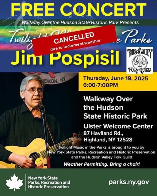 Walkway Over the Hudson, Highland 87 Haviland Road, Highland, New YorkCANCELLED DUE TO INCLEMENT WEATHER - by the NYS Parks Dept Jim Pospisil is a singer songwriter and multi instrumentalist from the Hudson Valley whose songs are marked by well crafted, sometimes quirky lyrics and themes from the personal to the profound. A mix of folk, blues, rock and more, his performances on guitar, mandolin, flute and harmonica can […]